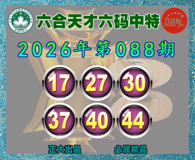 088期:《六合天才》 🐓六码中特🐓【17.27.30.37.40.44】开:27