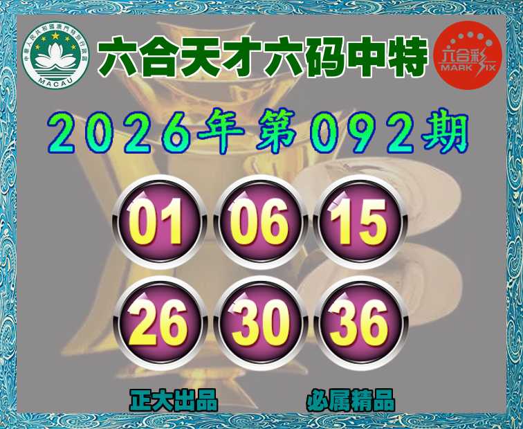 092期:《六合天才》 🐓六码中特🐓【01.06.15.26.30.36】开:06