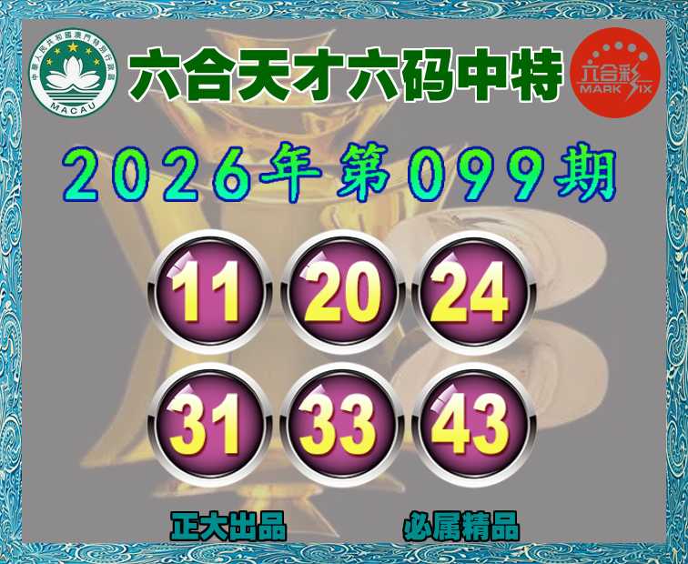 099期:《六合天才》 🐓六码中特🐓【11.20.24.31.33.43】开:12