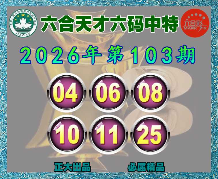 103期:《六合天才》 🐓六码中特🐓【04.06.08.10.11.25】开:0613:00公开验证